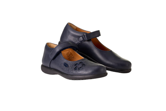 NDSFLORE - Sneakers en cuir recyclé marine avec velcro en frisson