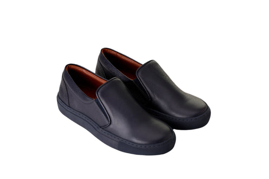 NDSMAX - Sneakers en cuir recyclé marine avec double velcro